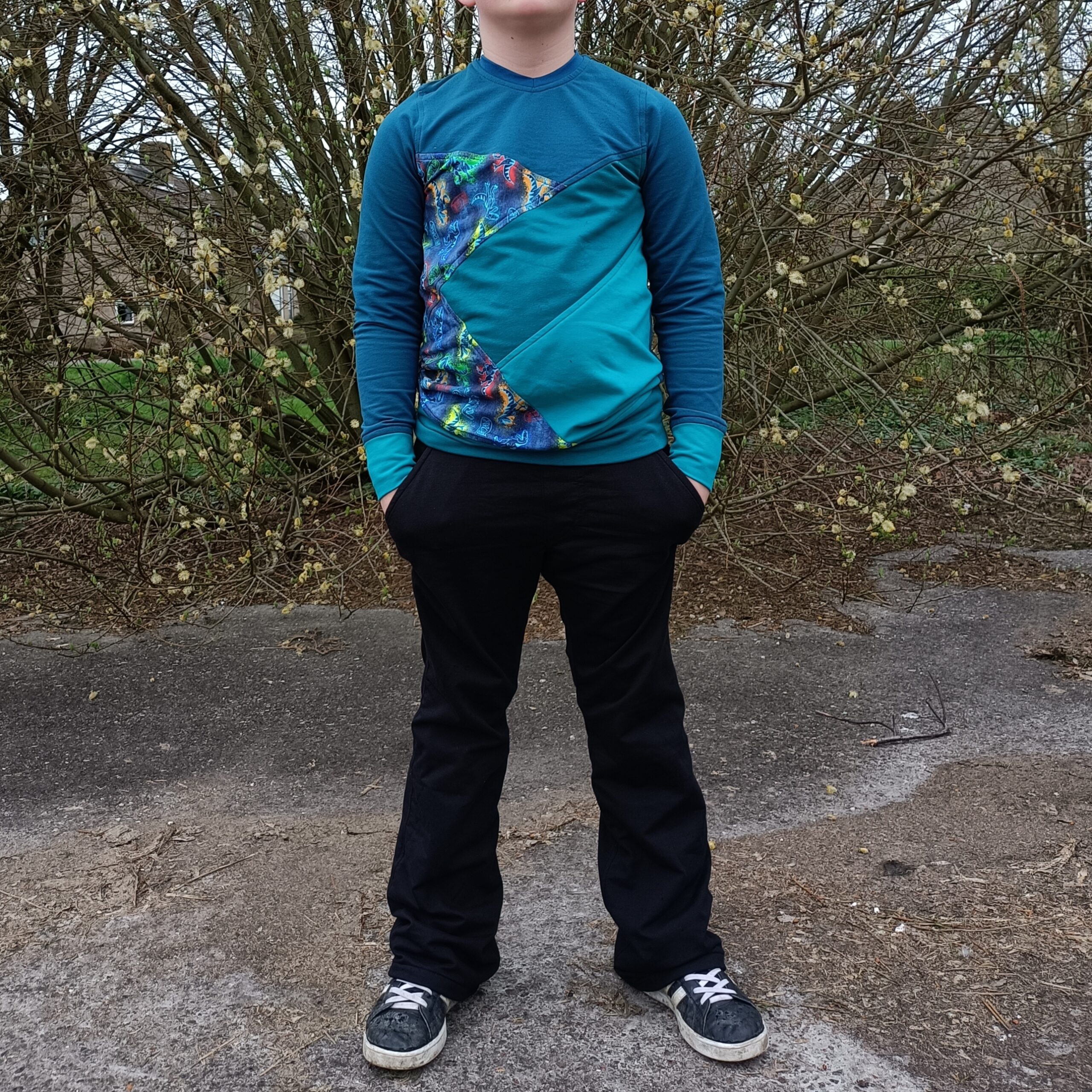 Van de ‘Kids Flare & Straight Pants’ maakte ik de rechte variant. Ik koos voor spijkerbroekzakken op de billen. Deze broek heeft ook een Extended versie voor kinderen die wat breder gebouwd zijn.